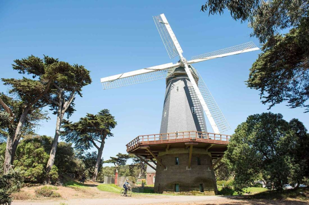 I was reminded recently of two really unique structures that I hadn’t thought about for years — the windmills of Golden Gate Park. When I first lived in San Francisco, I spotted them in the distance, as I stood at the curve of Point Lobos leading down to the Great Highway and the Pacific Ocean. I couldn’t believe my eyes. Windmills! Two of them! I had never seen anything like it and I couldn’t imagine why there were windmills at the western edge of Golden Gate Park, right across the road from the ocean. I asked every native San Franciscan I met about them, but never got a satisfactory answer, sometimes a vague reference to wind power to pump water. Water for what, I wondered? I investigated further and drove into the Park to get a closer look, or at least as close as I could get because they were off limits at the time, unsafe to get any closer. They had stood unused for almost a hundred years, the structures and the sails were in terrible disrepair, rotting from insect and water damage.